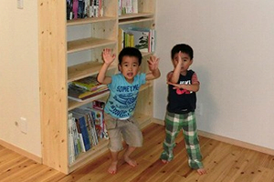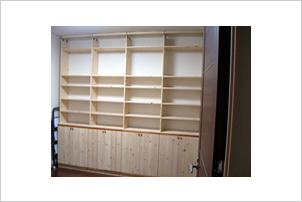 ランドセルラック2台を収納できる特殊な形の本棚作成をお願しましたが、1台目の本棚と同様、サイズもばっちりでした。