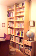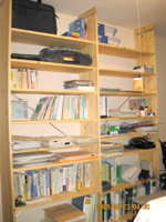 新築した時に造り付けの書棚を設けましたが既に一杯になってしまいました。(この写真の反対側にあります)